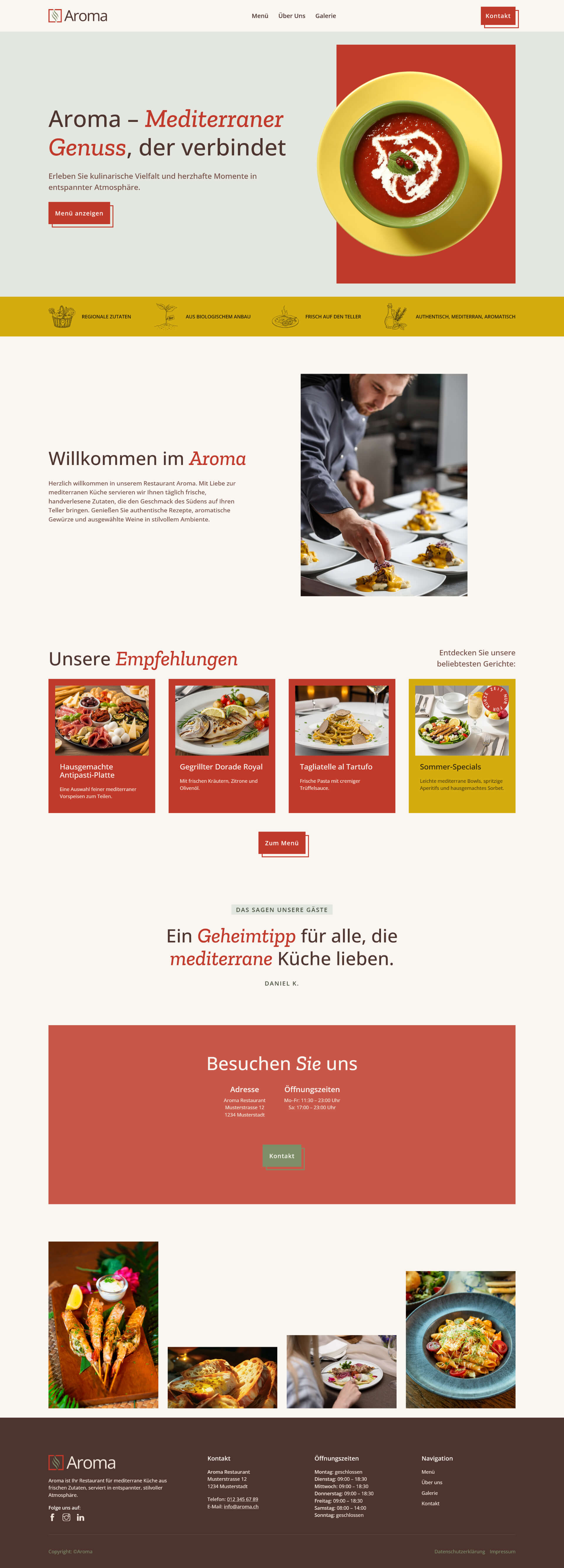 Einladendes Template für Gastronomie – mediterran, warm und genussvoll gestaltet.